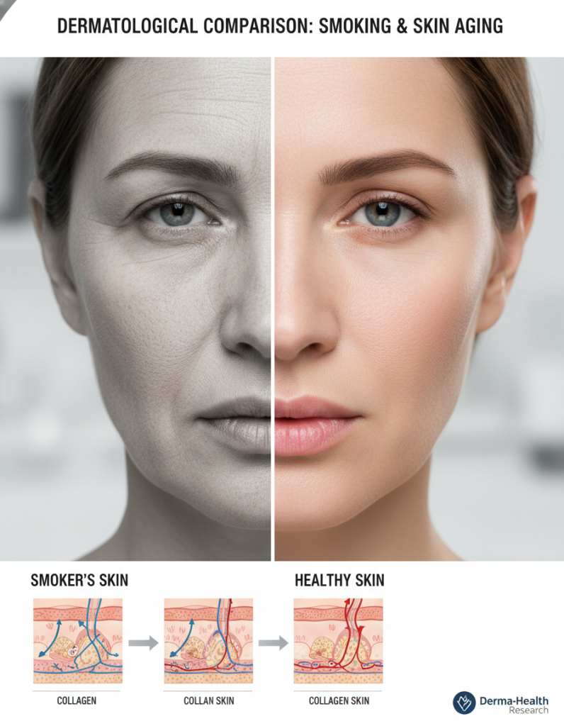 In addition, smoking causes the skin to appear dull and uneven. The toxins in cigarette smoke contribute to oxidative stress, which damages skin cells and accelerates aging.