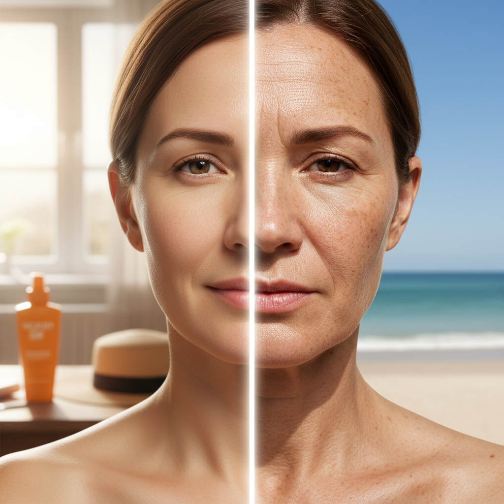 Collagen is responsible for keeping the skin firm and smooth, while elastin allows the skin to maintain its elasticity. When UV rays damage these proteins, the skin begins to develop wrinkles, fine lines, and sagging.